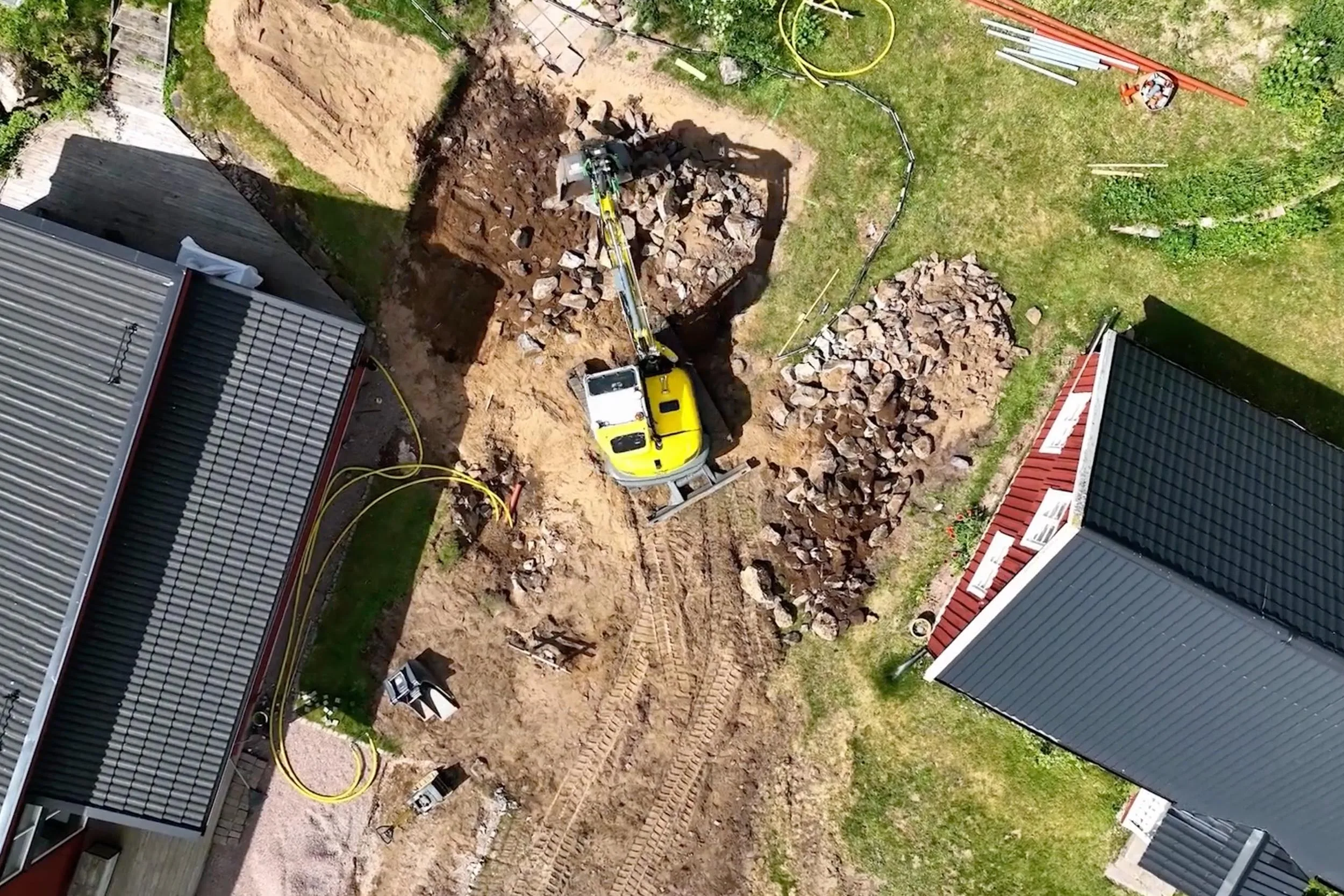 Med en modern maskinpark kan TransportCentralen hjälpa dig med många olika typer av markarbeten, från enskilda avlopp och dränering till att anlägga din husgrund, garageinfart eller trädgård.